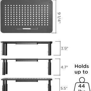 -25% AMERIERGO Dual Monitor Stand Riser for 2 Monitors, Monitor Stand for Desk, Adjustable Computer Monitor Stand with 2 Slot, Multifunctional Desktop Organizer Stand for Laptop, PC, Computer, Printer