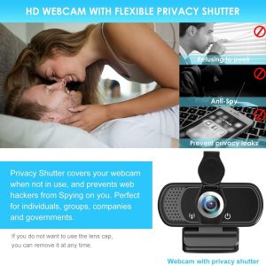 Full HD 1080P Webcam with Privacy Shutter and Tripod, Pro Streaming Web Camera with Microphone, Widescreen USB Computer Camera for Laptop Desktop